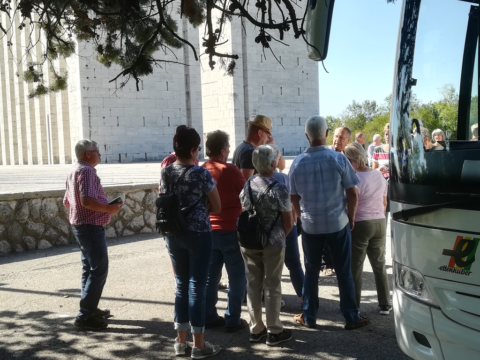 sich auf die beiden Weltkriege spezialisiert hatte und uns somit mit seinem fundierten Wissen zu beeindrucken verstand. Anschließend ging es nach Medea, wo wir das 1.500 qm große, aus Travertinstein gefertigte Denkmal „Ara Pacis Mundi“ besichtigten. Es soll an die Gefallenen aller Kriege erinnern.